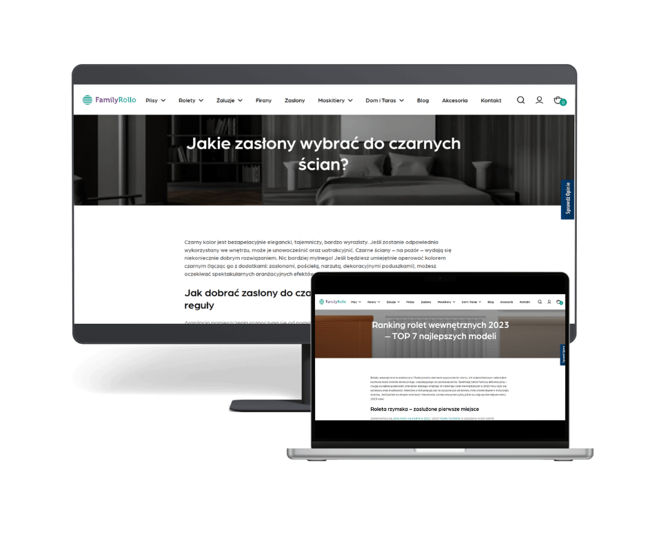 Wiele tekstów blogowych między styczniem a lipcem 2023, m.in. „Opadająca roleta – jak ją naprawić?”, „Jak zasłonić okna łukowe?”, „Jak wymierzyć firany i zasłony?”, „Jakie zasłony pasują do różowego pokoju?”, „Jak zdemontować rolety?”.