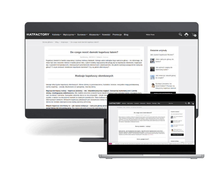 Teksty blogowe: „Jak nosić kapelusz męski?”, „Do czego nosić damski kapelusz latem?”, „Jaki kapelusz wybrać na wiosnę?”, „Do czego nosić beret damski?” oraz opis kategorii „Kapelusze męskie” do sklepu online.