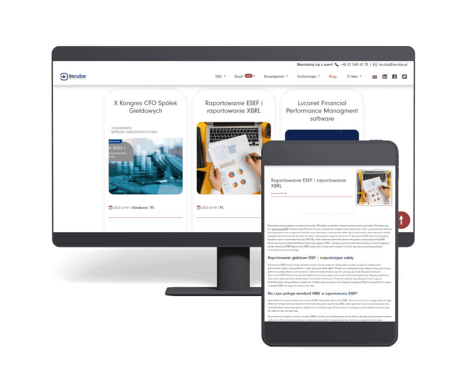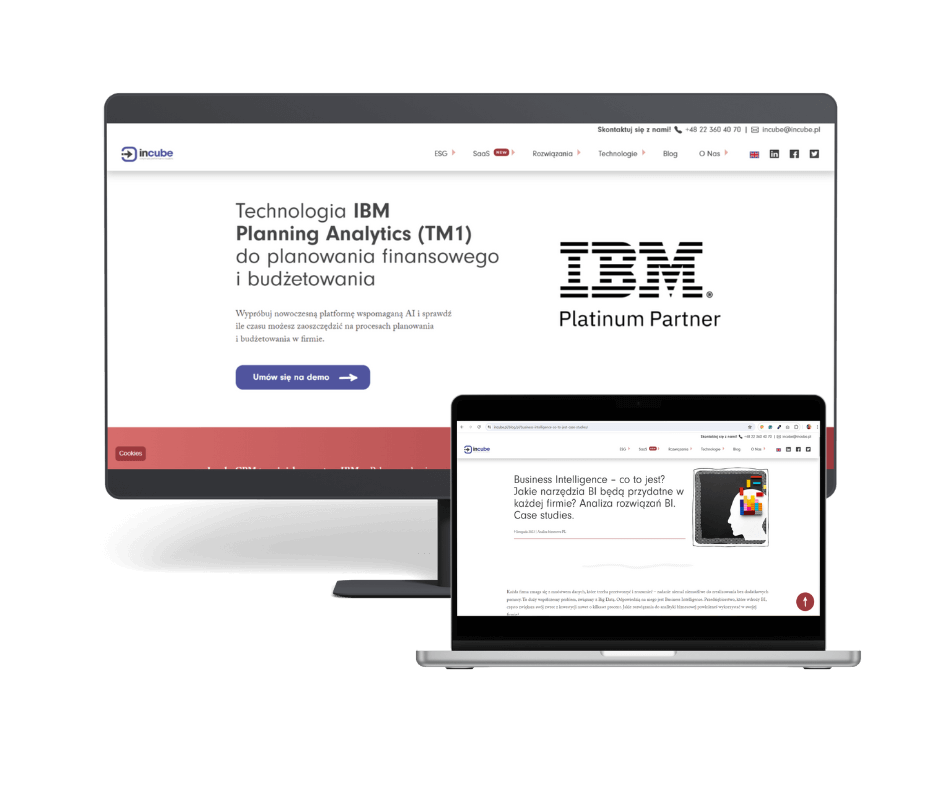 Treści do podzakładek „IBM Planning Analytics”, „IBM Cognos Analytics”, „IBM Cognos Controller”, „Anaplan”, „Qalcwise”, „LucaNet”, „OneStream”, „Insight Software” w zakładce „Technologie” oraz artykuły blogowe, publikowane między wrześniem a marcem 2023-2024.