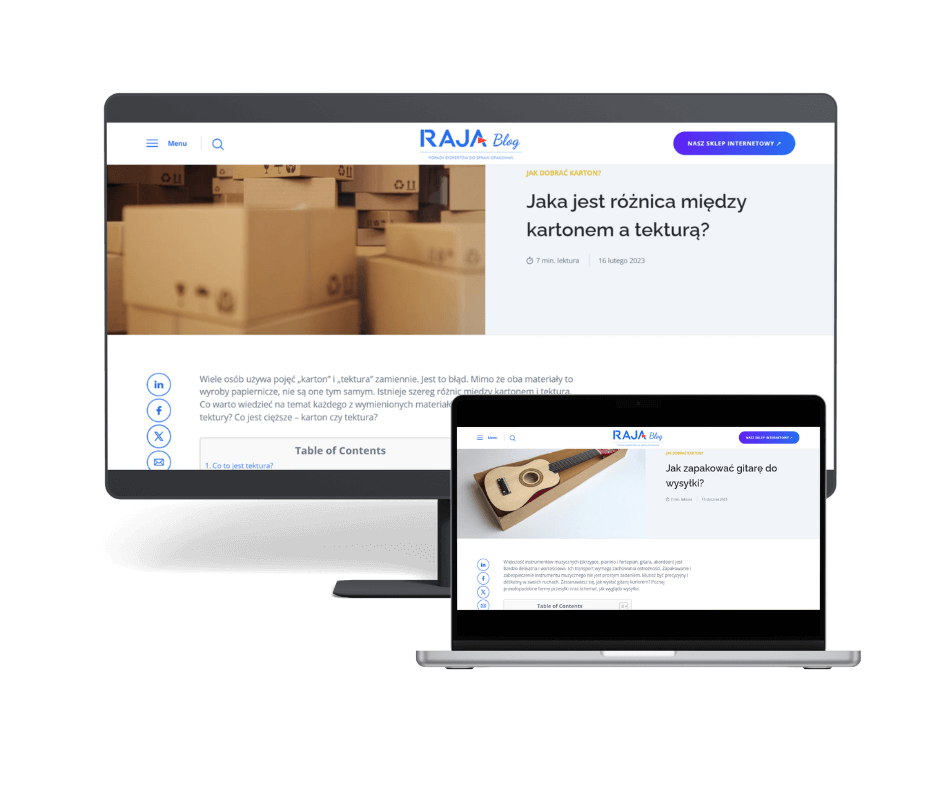Wiele tekstów blogowych między listopadem a wrześniem 2022-2023, m.in. „Jak składować kartony w magazynie”, „Jak używać folii stretch?”, „Konfekcjonowanie towaru – co to jest?” oraz wiele opisów produktów i kategorii do sklepu, np. dla „Folia pre-stretch”, „Folia stretch maszynowa czarna”, „Rafia”.