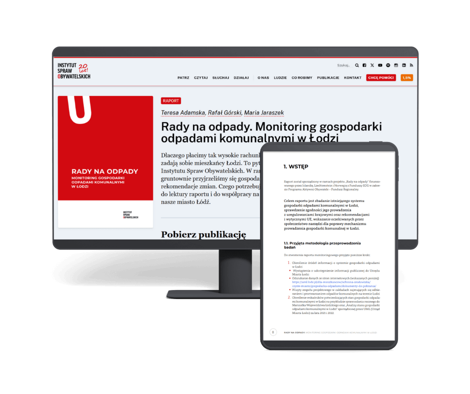 Korekta i redakcja raportu dotyczącego monitoringu gospodarką odpadami komunalnymi w Łodzi, przygotowanego przez Instytut Spraw Obywatelskich.